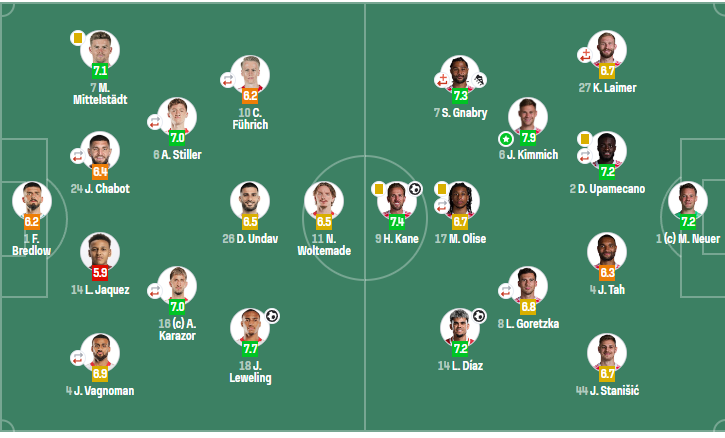 中场:14-路易斯·迪亚斯、7-格纳布里(80’22-拉斐尔·格雷罗)、17-奥利塞(90’42-卡尔)
