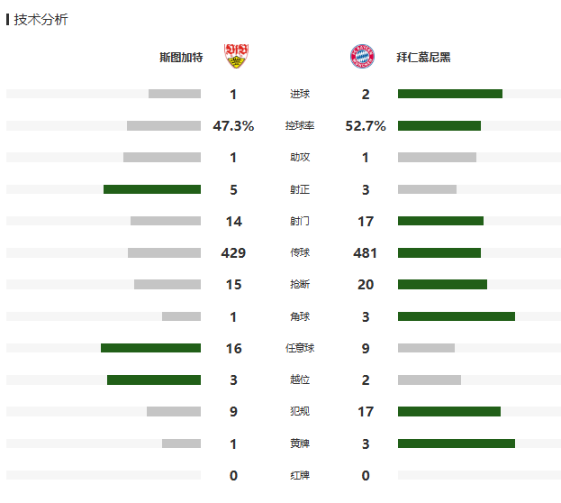 伤停补时第3分钟,切马头球摆渡,莱韦林头槌得手,斯图加特扳回一球。